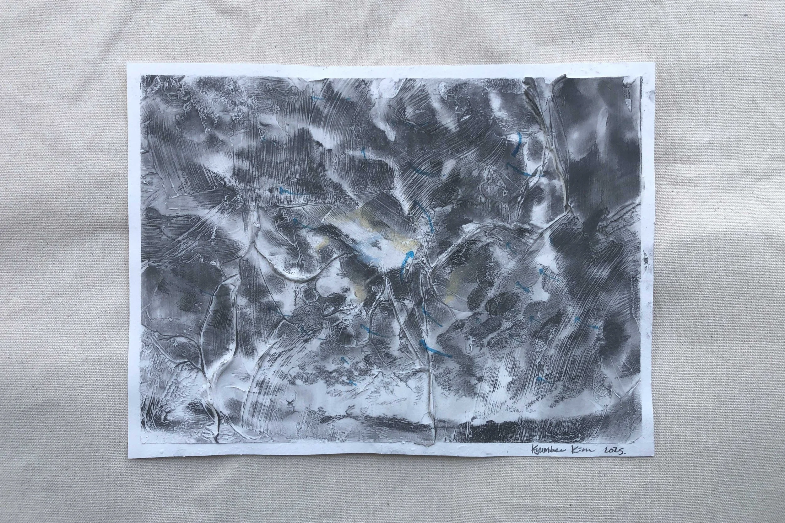 Moving Clouds 1, 9 in x 12 in, graphite, conte, ink and paste on paper, 2025
