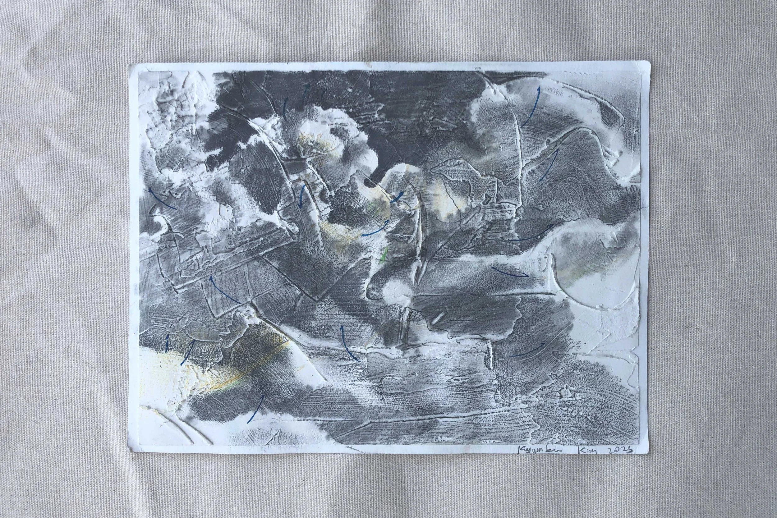 Moving Clouds 2, 9 in x 12 in, graphite, conte, ink and paste on paper, 2025